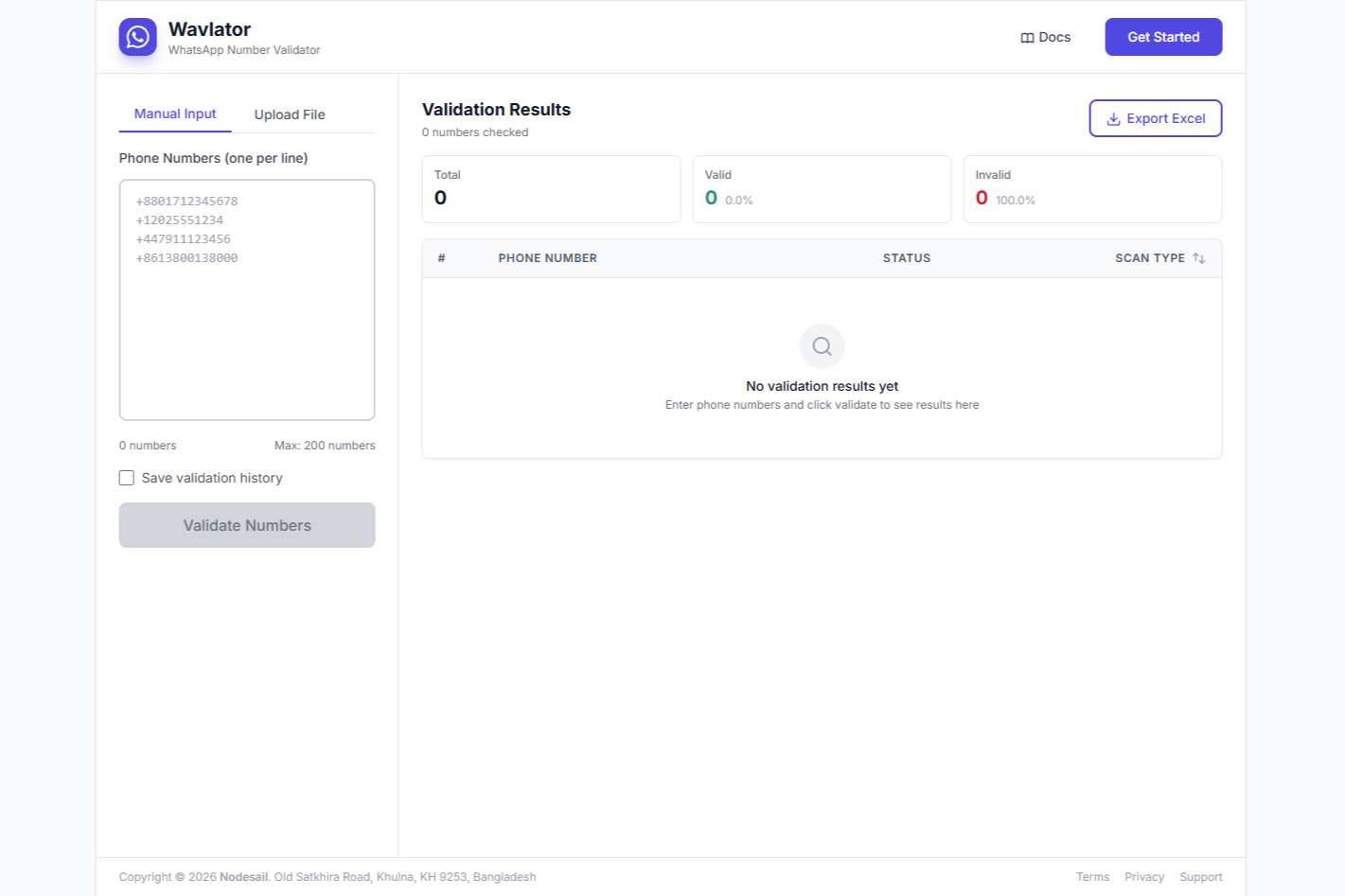 Wavlator checks if phone numbers are actually on WhatsApp. That's it. You give it a list of numbers, and it tells you which ones are active on WhatsApp and which ones aren't. It's made by Nodesail and it's pretty useful if you're doing any kind of WhatsApp marketing or just trying to clean up your contact lists.